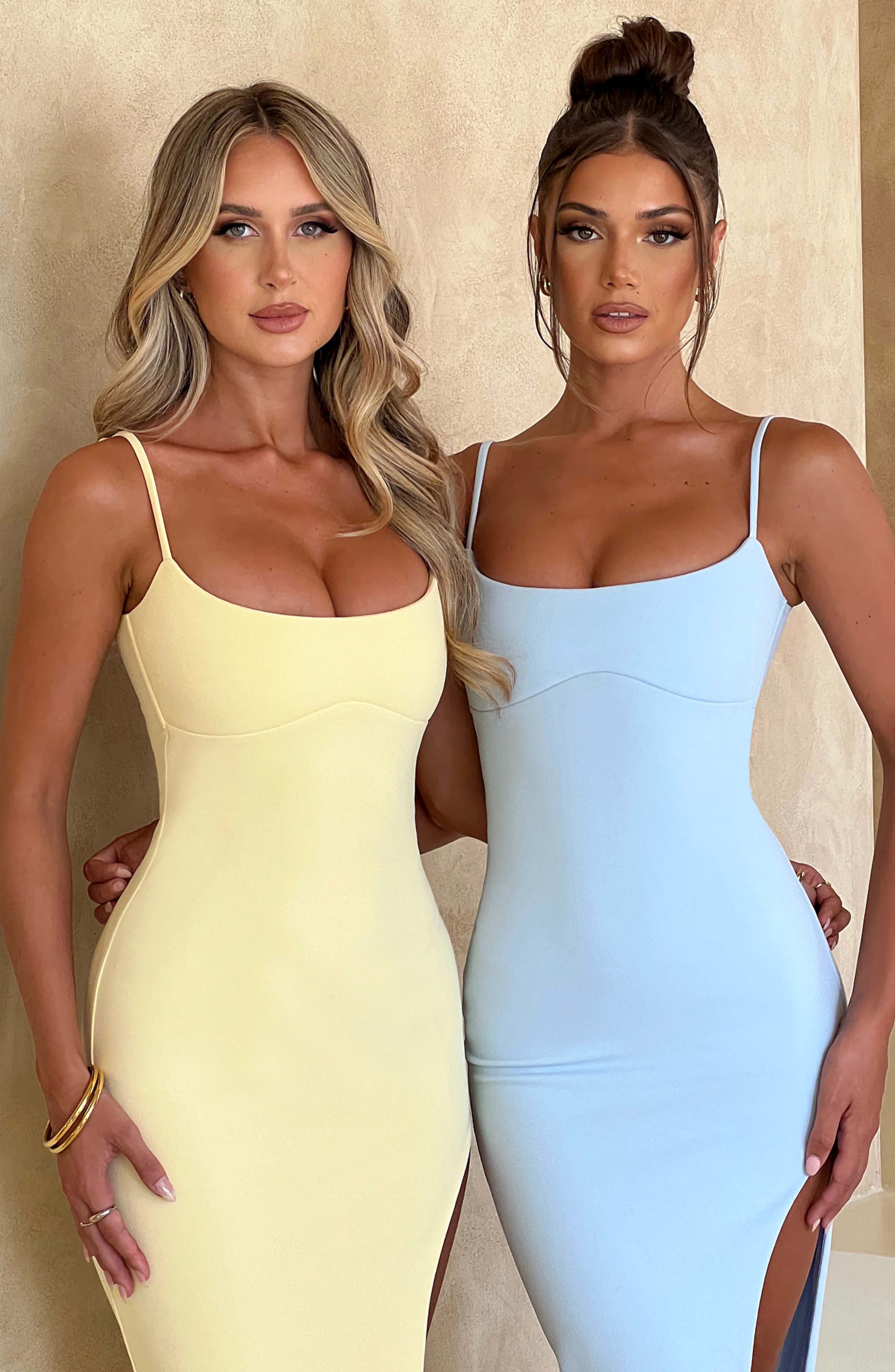 If you are looking for a super feminine. classic silhouette. meet the Tiarne maxi dress. Cut from our signature double layered fabric. Tiarne fits your body like a glove with a slit to the side skirt and thin. adjustable straps for your perfect fit.