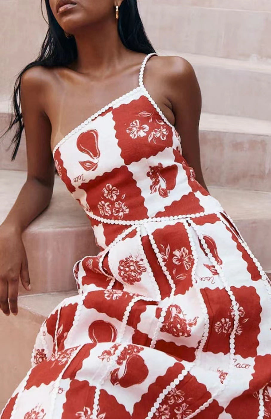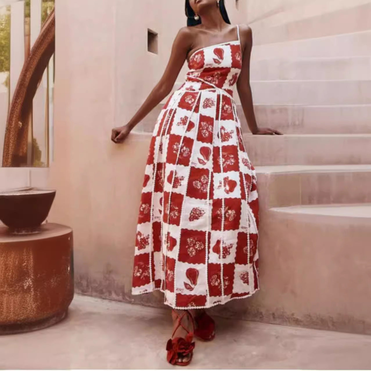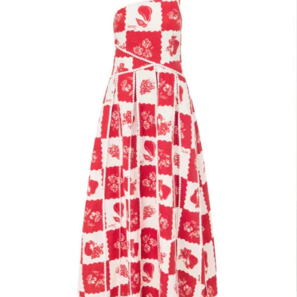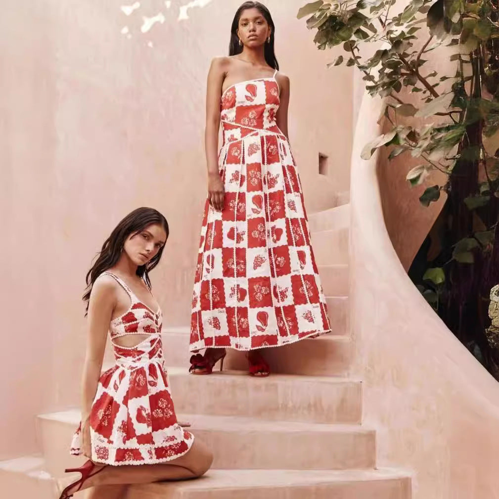 The sleeveless style with delicate spaghetti straps offers a perfect balance of sophistication and allure. making it suitable for various occasions from garden parties to evening events. Choose between vibrant red or classic white to match your personal style and the event's mood.