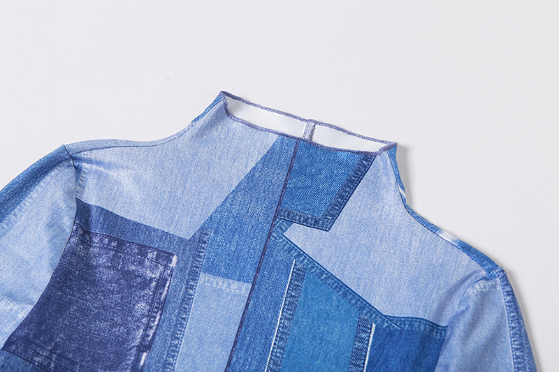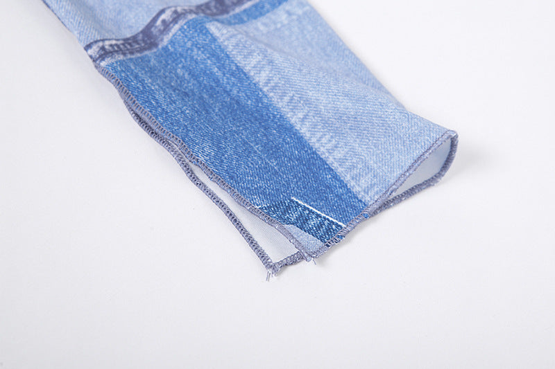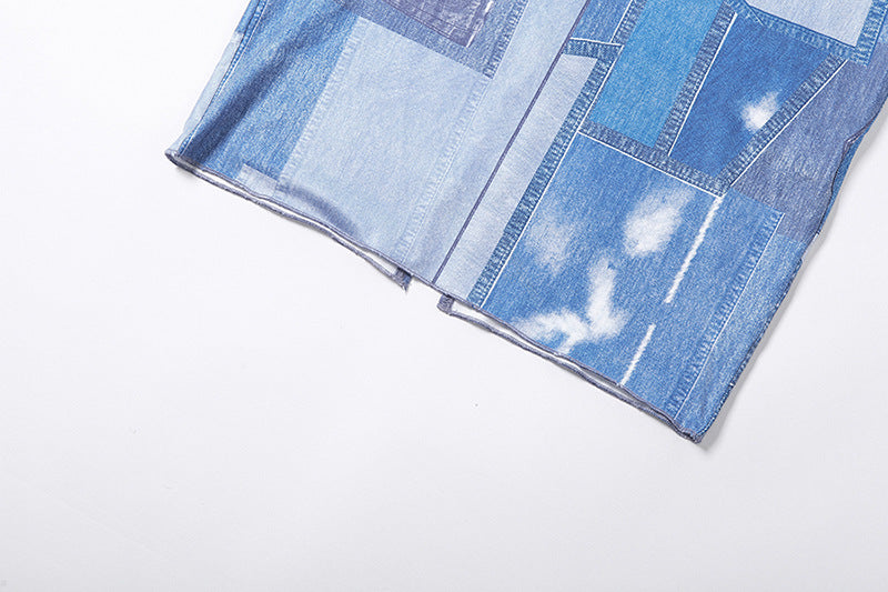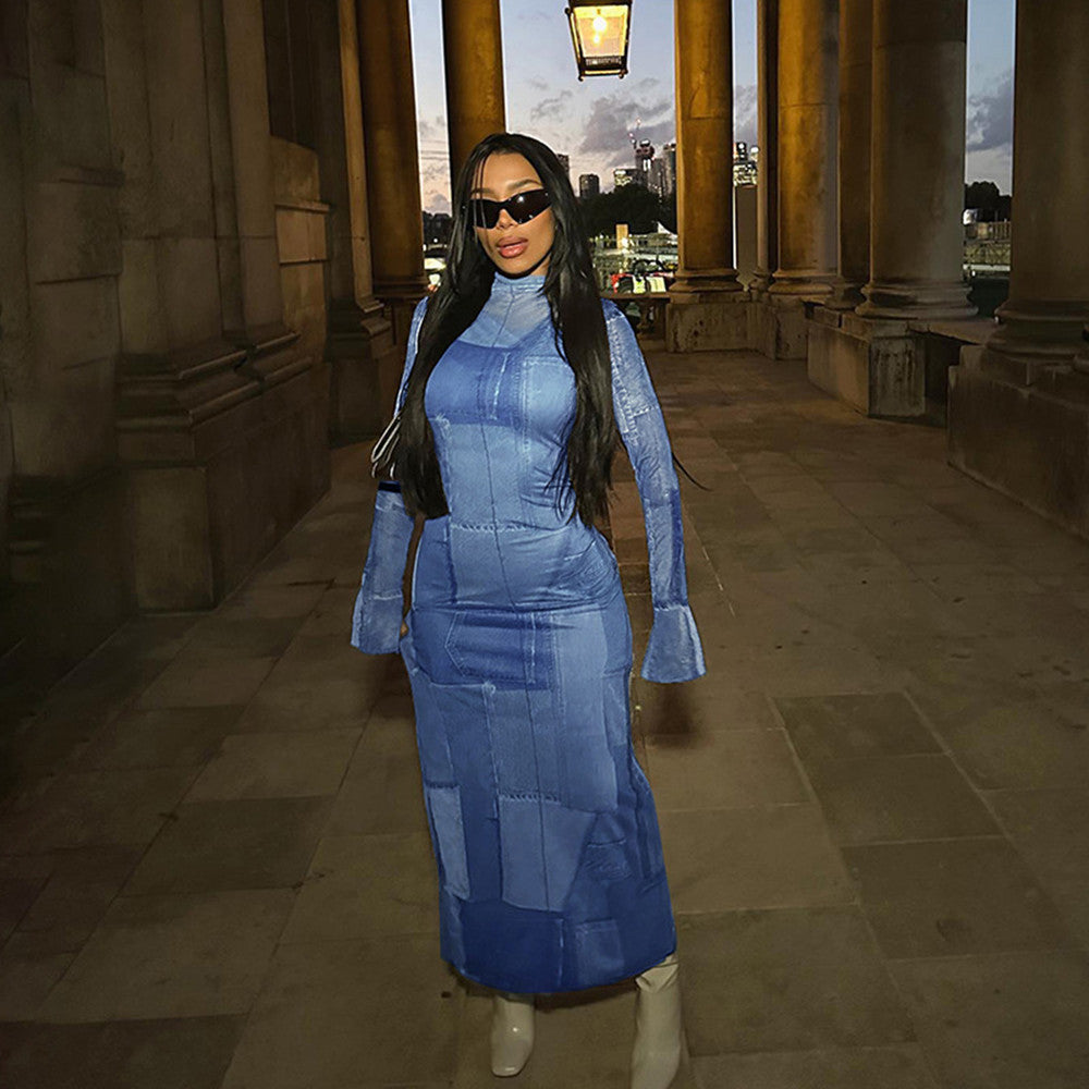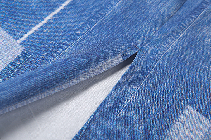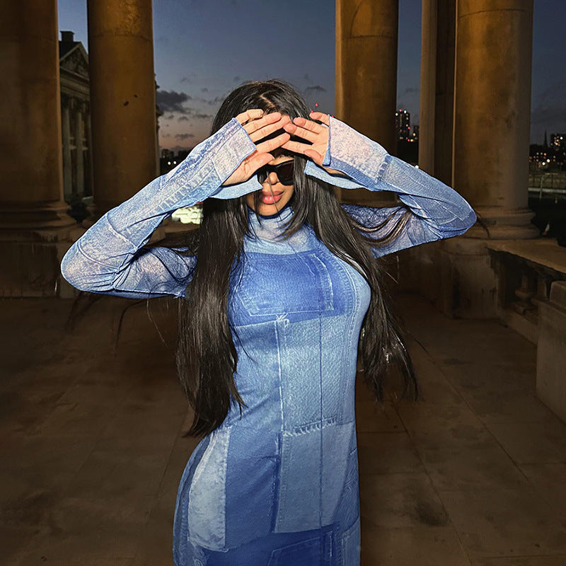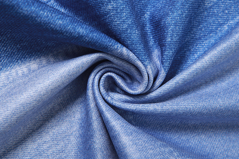 Show your chic style in our distressed denim print maxi dress. The elongated pencil skirt silhouette and round neckline add sophistication. The faded denim print made using digital printing techniques gives this soft polyester dress a trendy denim look.